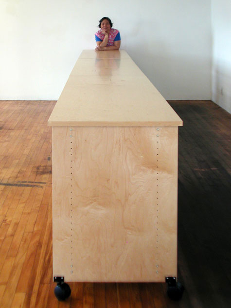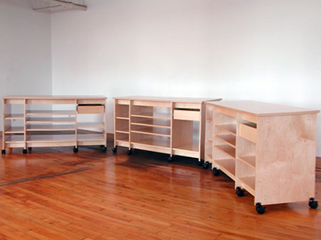 Art Studio Desks with drawers and painting storage rack, are made of Maple with a clear acrylic lacquer finish.